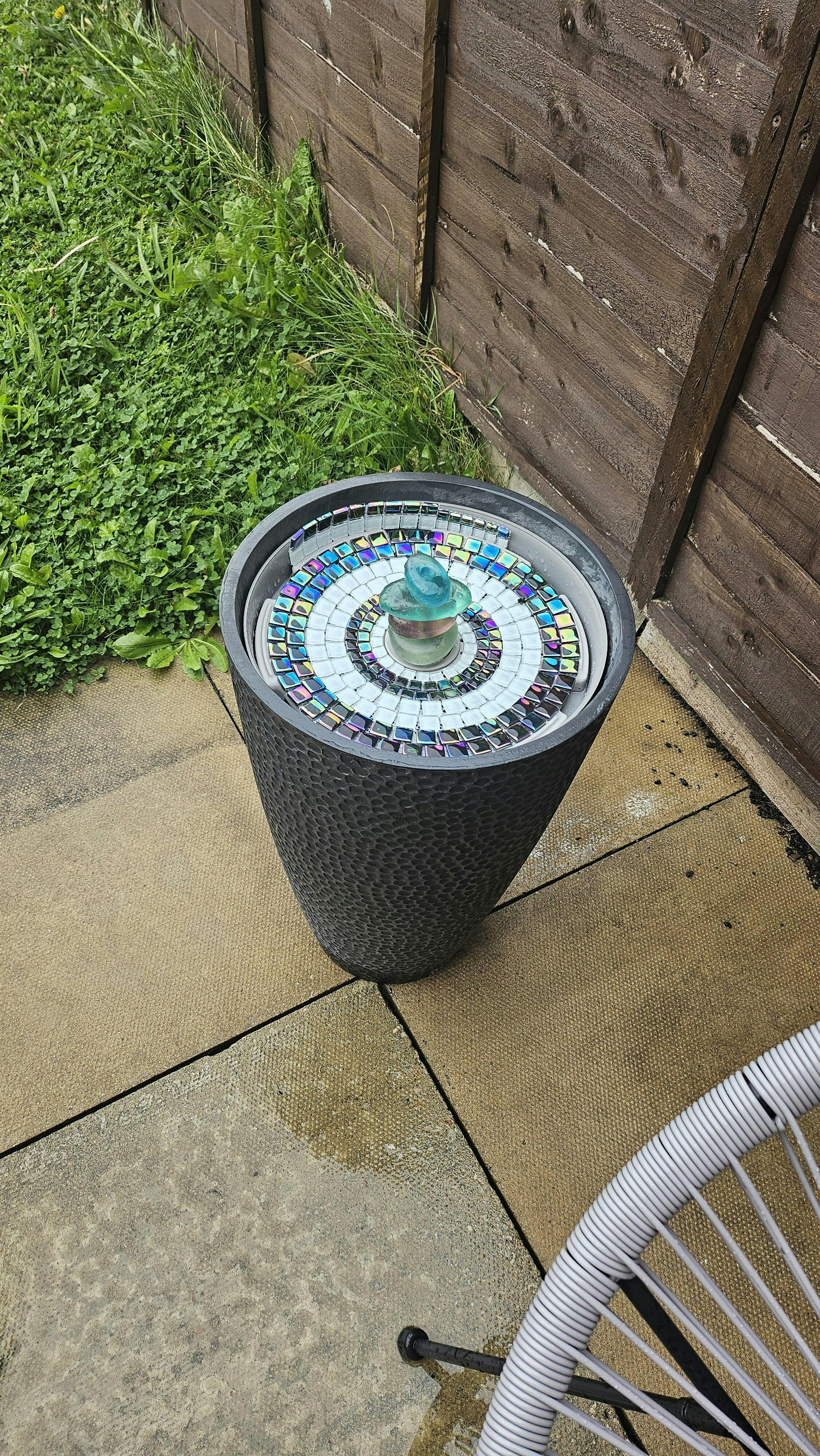 Mosaic Benefits: Simple Application: Just drop the insert into place for an effortless upgrade to your water feature. Easy Recharge: Easily remove the insert when you need to take out your pump for recharging, adding convenience to your maintenance routine. Color Coordination: Match your water feature to your home or garden decor with this versatile mosaic design. Versatile Options: Also available in Amber, Sky Blue, Black, Jade, Ocean Blue, Grey, and Forest Green.